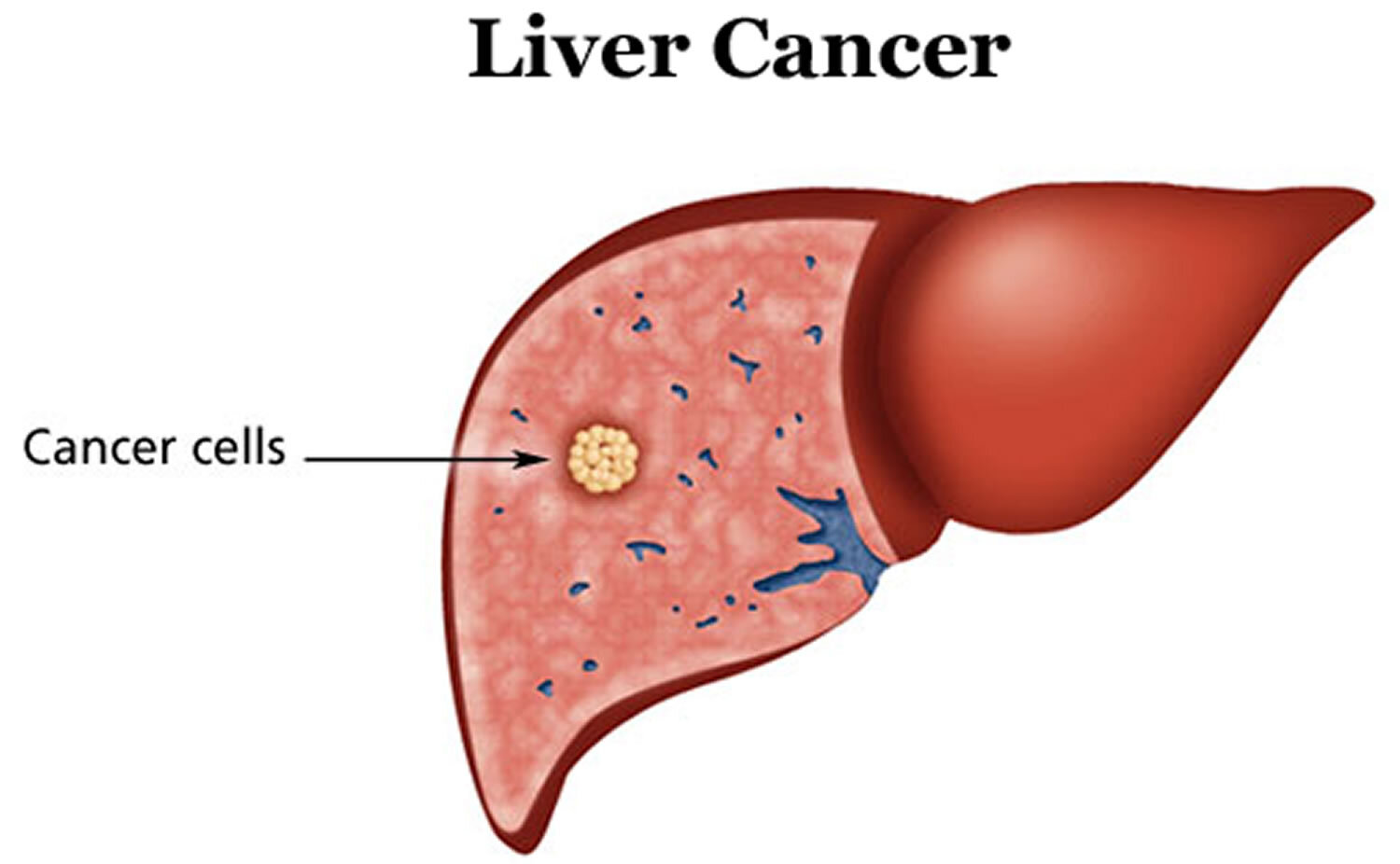 Several types of cancer can form in the liver. The most common type of liver cancer is hepatocellular carcinoma, which begins in the main type of liver cell (hepatocyte). Other types of liver cancer, such as intrahepatic cholangiocarcinoma and hepatoblastoma, are much less common.